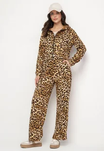 Jasnobrązowy Komplet Dresowy w Panterkę Bluza z Kapturem i Szerokie Spodnie Virhiris