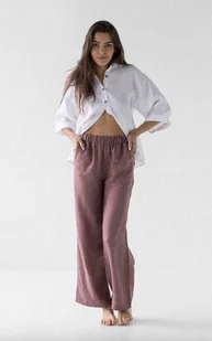 Lniane spodnie damskie ciemny róż