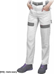 R.E.I.S. CORTON-L-T - Damskie spodnie ochronne do pasa CORTON, tkane 100% bawełna 260 g/m2 6 kieszeni elementy odlaskowe - biało-szary 36