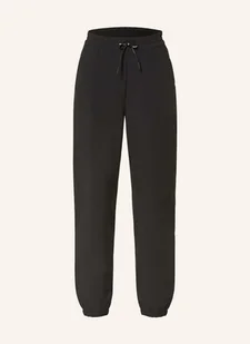 Boczne kieszenie wpuszczane. Kieszenie w szwach na zamki błyskawiczne po bokach. Elastyczne ściągacze na końcach nogawek. Detale z marką