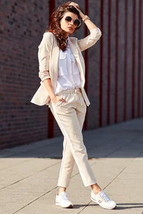 Casualowe spodnie z kieszeniami, wykonane z oryginalnej i wygodnej tkaniny. Elastyczna talia wraz ze sznureczkiem w pasie. Wykończone ozdobnym, kontrastowym lampasem. Idealnie spiszą się w połączeniu z bi ...