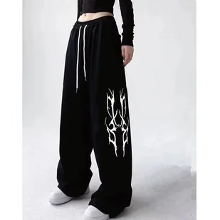 Spodnie dresowe damskie z nadrukiem - Czarny XXL