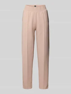 Spodnie dresowe damskie BOSS;Model ‘Shiny B’;Efekt: jednolity kolor;Krój: Krój regular fit;Aplikacja: Paski w kontrastowym kolorze, wyhaftowane logo;Pas: elastyczny;Kieszenie: boczne, wpuszczane kieszenie