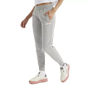 Spodnie damskie Ellesse Hallouli Jog SGK13652112 – szare Damskie spodnie dresowe Ellesse Hallouli Jog. Te damskie dresy będą doskonałym towarzyszem podczas codziennych dni. Zostały wykonane z przyjemnej tkaniny o wysokiej zawartości bawełny, dzięki czemu są nie tylko wygodne, ale też trwałe. Elastyczna talia pozwala na idealne dopasowanie do sylwetki, a ściągaczowe mankiety zapobiegną przesuwaniu się odzieży. Wsuwane kieszenie boczne pomieszczą niezbędne drobiazgi.