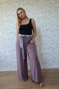 Spodnie len/wiskoza w kolorze wrzosowego ametystu