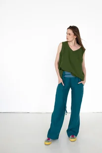Spodnie lniane luźne , turkusowe spodnie na lato
