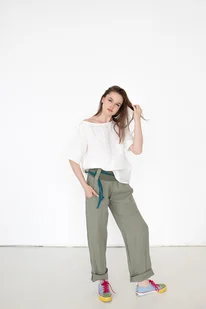 Spodnie szerokie lniane, len 100%, lekki miękki zmiękczany ( bardzo miły w dotyku ) spodnie idealnie dopasowują się do sylwetki, mają lekkie zaszewki pod ściągaczem bawełnianym w pasie, dzięki czemu nie są ta ...