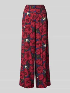 Spodnie materiałowe damskie GUIDO MARIA KRETSCHMER WOMAN;Mieszanka wiskozy;Wide Fit;Model ‘Finja’;Zakładki w pasie;Kieszeń z tyłu;Kwiatowy nadruk na całej powierzchni;Zapięcie na haftkę i zamek błyskawiczny;Szerokość w pasie w rozmiarze 36: 38 cm;Długość wewnętrzna nogawki w rozmiarze 36: 79 cm