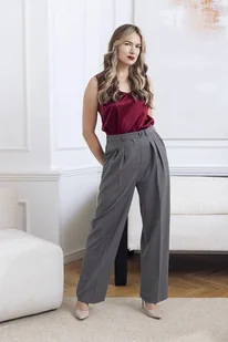 Dostępne rozmiary: 38, 40, 42, 44 lub na miarę Edycja limitowana Linia Jazzy to nonszalanckie, szerokie spodnie z wysokim stanem. Inspirowane męską modą: z zakładkami, przedłużonym paskiem, wyższą talią i n ...