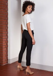 Spodnie z wysokim stanem optycznie wydłużają nogi i sprytnie ukrywają zbędne kilogramy. Zwężane nogawki, praktyczne kieszenie, uniwersalny krój, w którym każda sylwetka prezentuje się świetnie. Modelka ma ...