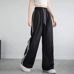 Szerokie dresy damskie z paskami - Czarny S