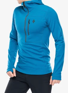 Produkt jest zaprojektowany w sposób ułatwiający noszenie pod wierzchnią warstwą, co sprawia, że doskonale sprawdzi się w różnych warunkach atmosferycznych. Bluza posiada zamek na 1/4 długości, lekkie elastyczne mankiety z wbudowanymi pętlami na kciuki oraz kieszeń na suwak na piersi. Dodatkowo tkanina główna jest certyfikowana przez Bluesign®. Bluza Black Diamond Coefficient QZ Hoody - kingfisher – najważniejsze cechy: Wykonana z tkaniny Polartec® Power Dry®;Tkanina główna z certyfikatem Bluesign®; Dopasowany kaptur pod kask; Kieszeń piersiowa na zamek; Zamek na 1/4 długości; Lekkie elastyczne mankiety z wbudowanymi pętlami na kciuki.