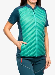 Kamizelka damska La Sportiva Alya Vest - lagoon/storm blue to projekt stworzony z myślą o aktywnych kobietach, których głównym obszarem działalności są zimowe biegi górskie. Z odpowiedzią na chłód podczas wyzwań przychodzi syntetyczna ocieplina PrimaLoft® Silver Insulation ThermoPlume®. Niezaprzeczalnym atutem kamizelki biegowej jest charakter przyjazny środowisku. Bowiem materiały poliestrowe zastosowane do jej uszycia pochodzą w całości z przetworzonych plastikowych butelek. Natomiast włókna poliamidowe to powtórne wykorzystanie pozostałości produkcyjnych.