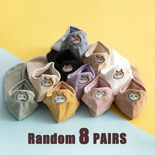 TEMU 5/10 Par Damskich Skarpetek do Kostki z Uroczym Haftem Kotów - Miękkie, Oddychające Poliestrowe Skarpety na Wiosnę/, Wielokolorowe Opcje,