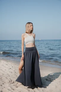 Szara długa spódnica do jogi z rozcięciami Spódnica do jogi Flowcut to sportowa elegancja z romantycznym twistem - falowana sportowa spódnica maxi Flowcut sprawdzi się zarówno w codziennym ruchu jak i podczas lekkiej praktyki jogi czy pilatesu. Elastyczny pas pięknie podkreśla talię, a falowany krój z bocznymi rozporkami dodaje lekkości i swobody kroków, subtelnie odsłaniając nogi przy spacerze, na macie czy w miejskim rytmie. Połącz spódnicę Flowcut z podkreślającym dekolt i plecy topem Total Eclipse Wrap i uzyskaj ultrakobiecy, romantyczny outfit idealny na randkę czy wyjątkową okazję. W codziennym wydaniu spódnica świetnie pasuje do bluzy Ivy Hoodie i sneakersów tworząc miejski look. Zwiewny, falowany krój maxi z bocznymi rozporkami zapewnia swobodę ruchu podczas jogi, pilatesu, fitnessu i codziennych aktywności Elastyczny pas modeluje talię podkreślając kobiece linie sylwetki Uniwersalny fason spódnicy pozwala stworzyć zarówno romantyczną, kobiecą stylizację jak i sportowy, swobodny set 95% bawełna, 5% elastan