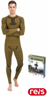 Bielizna termoaktywna męska zestaw koszulka długi rękaw kalesony dzianina elastan oliwkowo-czarny czarno-brązowy - oliwkowo-czarny 2XL-3XL