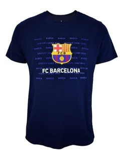 Koszulka FC Barcelona - licencjonowana logo Barcy oraz napis FC BARCELONA na tle z napisów Barca Spotify Camp Nou Kolor: granatowy Gładka z tyłu Rozmiar: L O...