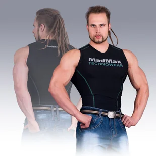 Koszulka męska MadMax Kompresní triko bez rukávů MSW904 černozelené XL
