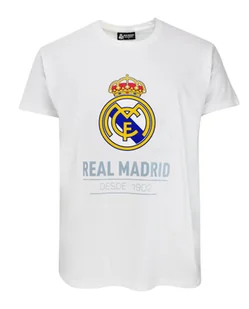 Koszulka FC Real Madryt - licencjonowana Napis: RMCF, data założenia klubu 1902 oraz logo Real Kolor: biały Gładka z tyłu Rozmiar: 116 Oficjalna licencjonowa...