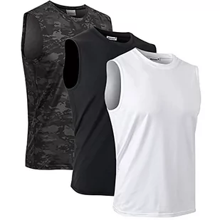 MeetHoo męska koszulka bez rękawów bez rękawów, szybkoschnąca, oddychająca koszulka do biegania, Czarny + Biały + Kamuflaż, XL