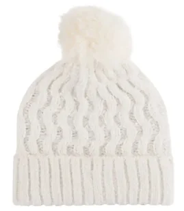 Ciepła czapka damska z pomponem splot fala jesienna zimowa