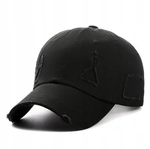 Bawełniana czapka z daszkiem \n z modnymi przetarciami i naszywkami \n \n materiał: 100% bawełna \n na tej aukcji kolor: czarny \n obwód regulowany: 56 - 60 ...