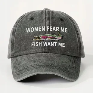 ⭐ Czapka z daszkiem dla prawdziwego wędkarza – z charakterem, humorem i solidnym wykonaniem. Jeśli łowienie to dla Ciebie coś więcej niż hobby – ta czapka jest dokładnie dla Ciebie. ✔️ Wyrazisty haft Napis: WOMEN FEAR ME / FISH WANT ME Trwały, gęsty haft – nie nadruk, nie naklejka. ✔️ Styl vintage / washed Efekt lekko spranego materiału – wygląda dobrze od pierwszego założenia.