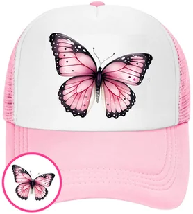 CZAPKA Z DASZKIEM MOTYLE MOTYL DLA DZIECI SIATKA RÓŻOWA BEJSBOLÓWKA