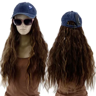 DAMSKA CZAPKA Z DASZKIEM PERUKĄ DŁUGIE KRĘCONE WŁOSY DŁUGOŚĆ 40CM BRĄZOWE Damska czapka z daszkiem i peruką Stylowa czapka z daszkiem idealnie uzupełni każdy codzienny outfit. Czapka posiada możliwość regulacji, zatem łatwo można ją dopasować do swoich potrzeb. Włosy do złudzenia przypominają naturalne, schowaj swoje włosy pod czapką i w mgnieniu oka zmienisz się w kogoś innego. Bejsbolówka z naturalnie wyglądającymi włosami ⭐️⭐️⭐️⭐️⭐️