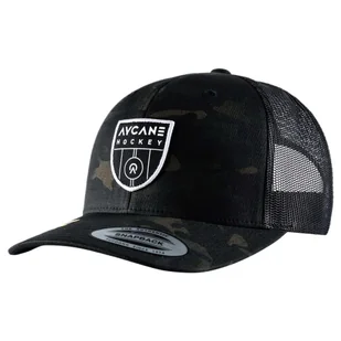 Męska czapka z daszkiem - Materiał: 1% elastan, 60 % recyklovaný polyester, 39 % bawełna • Kolor: czarny • Daszek: zaczepiony • System zapinania: snapback - plastikowy pasek • Wzór: