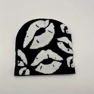TEMU Y2K Hip-Hopowa Czapka Bez z Czerwonym Nadrukiem Ust - Dzianinowa, Idealna na Narty, Rower, Aktywności na Zewnątrz - Uniseksowa Zimowa Sportowa i