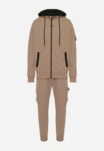 Ciemnobeżowy Komplet Dresowy z Bawełną Rozpinana Bluza z Kapturem i Spodnie Liledis