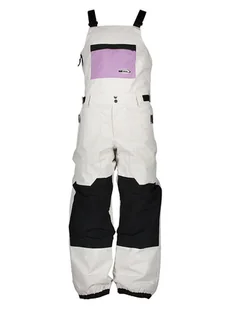 Spodnie narciarskie "Fly High Bib" w kolorze kremowo-czarno-fioletowym - technologia: DryFlight, WarmFlight - wodoszczelność: do 10 000 mm słupa wody - oddychalność - właściwości termoizolacyjne - zgrzewane szwy krytyczne - fason: regular fit - szelki: z przednim panelem i regulacją - pas: