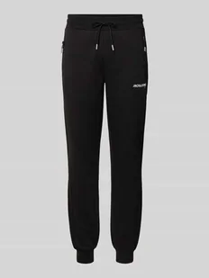 Spodnie dresowe męskie Jack & Jones;Mieszanka materiałów z dodatkiem bawełny;Krój slim fit;Model ‘Gordon’;Nadruk z logo;Elastyczny pas z tunelem;Kieszenie wpuszczane zapinane na zamek błyskawiczny;Fakturowany wzór;Elastyczne zakończenia nogawek;Długość wewnętrzna nogawki w rozmiarze M: 79 cm