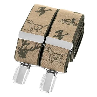 Oto gratka dla każdego miłośnika polowań - eleganckie szelki w beżowym kolorze, ozdobione nadrukiem zwierząt łowieckich i psów myśliwskich. Tematycznie dobra...