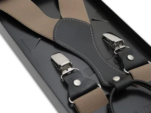Brązowe szelki do spodni - kawa z mlekiem SZ179 Super cena! Polski producent! Mocne stalowe żabki z plastikowym dociskiem Łączenia wykonane ze skóry naturaln...