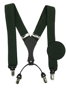Ciemnozielone szelki do spodni. Produkt polski. Cena promocyjna: Mocne stalowe żabki z plastikowym dociskiem Najwyższej jakości guma galanteryjna o szerokośc...