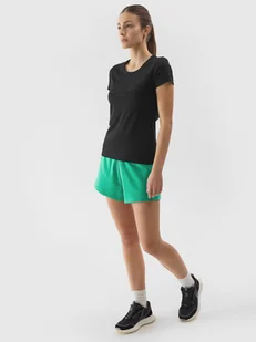 Spodenki dresowe damskie idealnie sprawdzą się jako element zarówno casualowych, jak i sportowych stylizacji na co dzień. Posiadają krój regular, który wygodnie dopasowuje się do sylwetki oraz krótkie nogawki do połowy uda. Damskie spodenki dresowe są wykonane w 77% z bawełny, dzięki czemu są miękkie, trwałe i przyjemne w dotyku. Dodatek poliestru (23%) sprawia, że materiał utrzymuje fason i jest odporny na zużycie nawet przez wiele sezonów. Dzianina dresowa french terry z jednej strony jest gładka, natomiast z drugiej posiada widoczny splot w postaci pętelki.