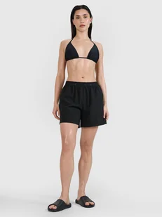 Szorty na plażę damskie wykonane z materiału o średniej gramaturze 120 gsm, która sprawia, że są one bardzo lekkie. Spodenki nie posiadają podszycia. Wykonane w technologii 4Way Stretch, która sprawia, że materiał rozciąga się we wszystkich kierunkach (w pionie i poziomie). 2 otwarte kieszenie po bokach. Guma w pasie zapewnia wygodne dopasowanie.