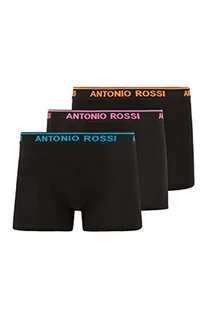 Antonio Rossi Męskie bokserki hipsterskie (3 sztuki) szorty, czarne z kolorowymi paskami, L, Czarny z kolorowymi opaskami na talię, L