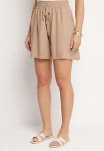 Beżowe Bawełniane Szorty z Wysokim Stanem i Wiązaniem Zenmio