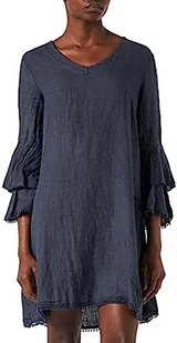 Bonateks Damskie szorty z dekoltem w serek i marszczonymi podwójnymi rękawami sukienka casualowa, granatowe, rozmiar 44 EU, niebieski, 44