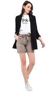 Bonateks szorty damskie bermudy 100% lniane wykonane we Włoszech, szorty bermudzkie z kieszeniami i pasem szalik, deserowe, rozmiar: L, Pustynia, L