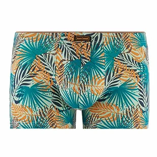 bruno banani Męskie szorty z nadrukiem Yucca retro, Zielony benzyna/pomarańczowy nadruk, S