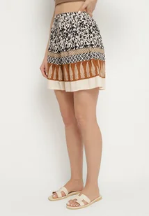 Czarno-Beżowe Bawełniane Szorty z Wysokim Stanem w Kwiaty Kolessa