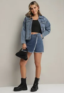 Granatowe Jeansowe Spódnico-Spodenki Jeansowe z Bawełny z Wysokim Stanem Neliatha