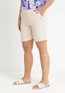 Jasnobeżowe Eleganckie Szorty z Ozdobnymi Guzikami i Gumką w Pasie Daviona