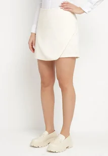 Jasnobeżowe Spódnico-Szorty z Wiskozą o Asymetrycznym Kroju z Wysokim Stanem Calisse