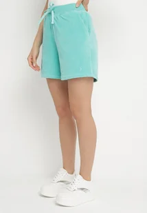 Jasnozielone Welurowe Szorty Ozdobione Wiązaniem Ralladia