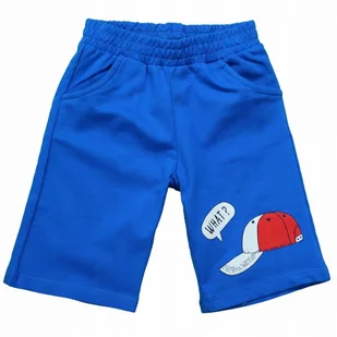 Wygodne krótkie spodenki dresowe długość do kolana w kolorze niebieskim na lewej dole lewej nogawki nadruk - czapka po bokach wewnętrzne kieszonki w pasie gu...